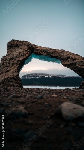 Fototapeta premium Arctic Landscape Serene Ice Arch Glacial View Rock Formation