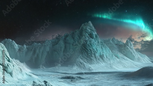 Fototapeta premium Arctic landscapes under the cosmic ballet, celestial glow illuminating glacial peaks