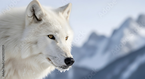 Obraz premium Arctic Majesty: Portrait of a Snow-Dusted White Wolf