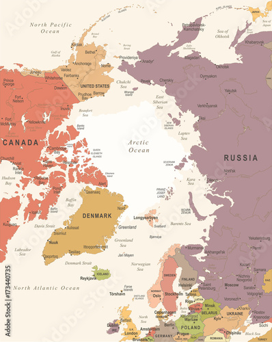 © Porcupen, Fototapeta premium Arctic Region Map - Vintage Vector Illustration