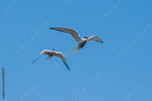 Obraz premium Arctic Terns (Sterna paradisaea) in Barents Sea coastal area, Russia