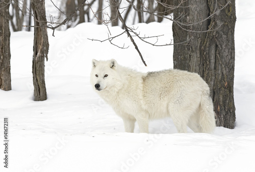 Naklejka premium Arctic wolf (Canis lupus arctos) walking in the winter snow in Canada