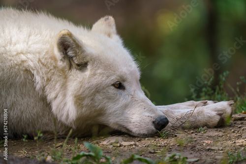 Fototapeta premium Arctic wolf enjoying the morning sun (Canis lupus arctos)