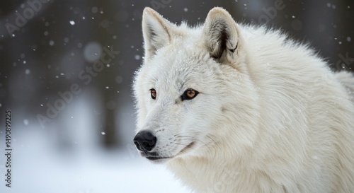 © alisya, Fototapeta premium Arctic wolf gazes in snowy woods