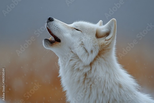 Fototapeta premium Arctic Wolf Howling in Snow