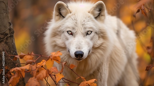 © Suleyman, Obraz premium Arctic Wolf Looking at the Camera on a Fall Day Generative AI