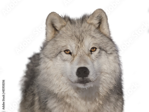 © ericlefrancais1, Fototapeta premium Arctic wolf male head-shoot over white background