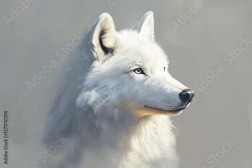 © paulus, Obraz premium Arctic wolf portrait, sunlit, snowy background, wildlife art
