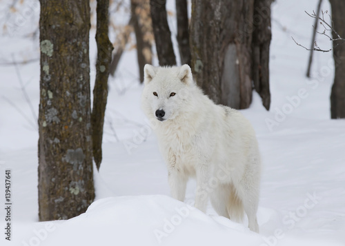 © Jim Cumming, Fototapeta premium Arctic wolf standing in the winter snow in Canada