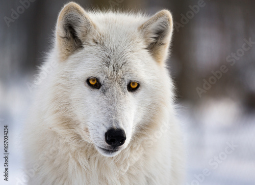 © AudreyATucker, Obraz premium Arctic Wolf Staring Intently in a Winter Landscape