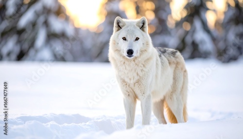 Obraz premium Arctic Wolf Sunset Snow.