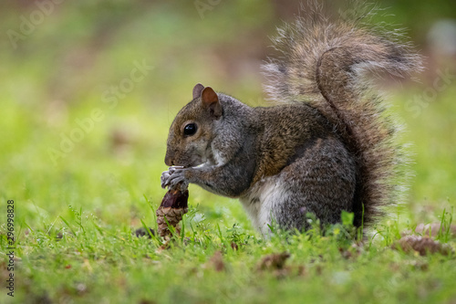 © julio, Fototapeta premium Ardilla comiendo tranquilamente en un jardín