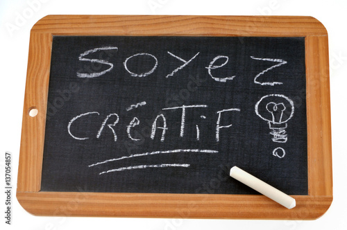 © Richard Villalon, Fototapeta premium Ardoise avec écrit dessus soyez créatif