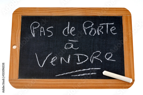 © Richard Villalon, Obraz premium Ardoise sur laquelle il y a écrit pas de porte à vendre
