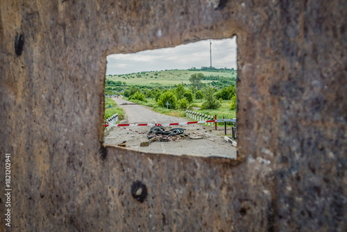 © Fotokon, Obraz premium Area of frontline positions of pro-russian militia in Sloviansk during Russo-Ukrainian War in Donbas region, Ukraine