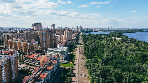 © Yarmolovych, Obraz premium Area with residential buildings, waterfront, pedestrian and park area. Cityscape
