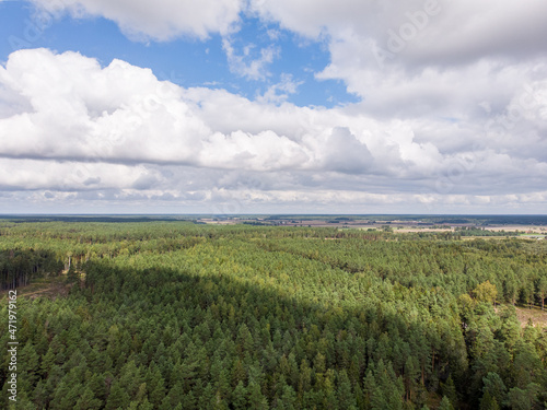 © Artūrs Stiebriņš, Fototapeta premium Areal drone photography view of beautiful countryside forest.