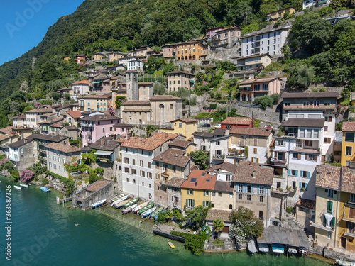 Fototapeta premium Areal view at the village of Gendria on lake Lugano, Switzerland
