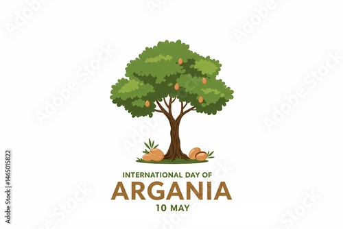 Obraz premium Argan Tree with Fruits and Nuts Graphic: International Argania Day Vector (May 10)