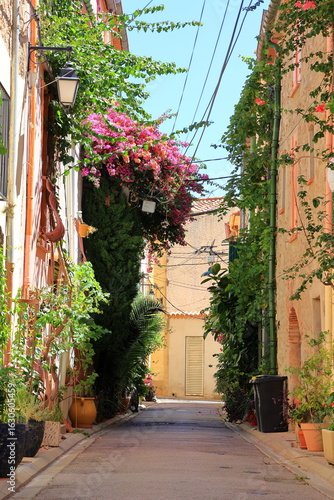 Fototapeta premium Argeles-sur-Mer's quaint streets, potted flowers and vivides colors charming...