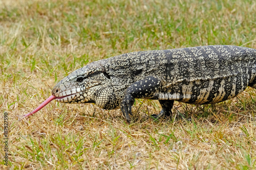 Naklejka premium Argentine Black and White Giant Tegu, Tupinambis Merianae lub Salvator Merianae, w Urugwaju