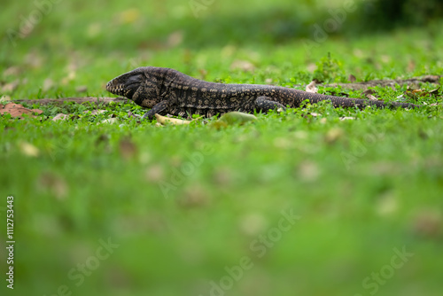 © FotoRequest, Naklejka premium Argentine Black and White Tegu in green grass