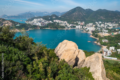 Naklejka premium Ariel view of Stanley bay seen from Che Pau Teng-Rhino Rock trail in Stanley, Hong Kong