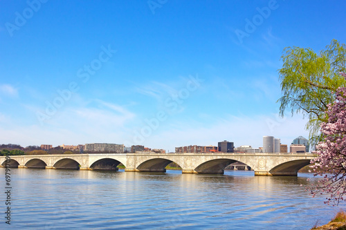 Fototapeta premium Arlington memorial Bridge during cherry blossom in Washington DC