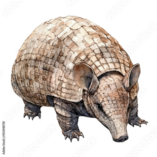 © AMIDCO, Fototapeta premium Armadillo Close Up, watercolor vector, isolated on a white background.