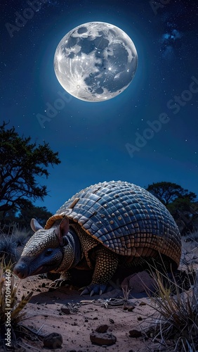 Fototapeta premium Armadillo Under Night Sky with Full Moon