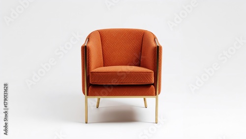 © The 2R Artificiality, Obraz premium Armchair featuring elegant brass legs and an art deco design with orange quilting, focus on aesthetic appeal