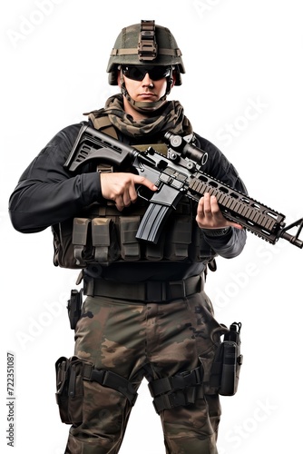 © VisualMarketplace, Fototapeta premium Armed Soldier Ready for Action, AI Generated