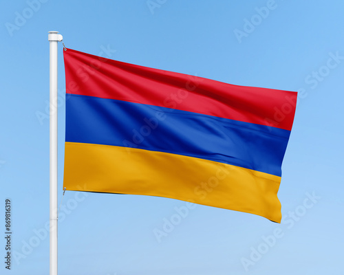 © Lesia, Naklejka premium Armenia flag on stick on sky background. Realistic flag illustration