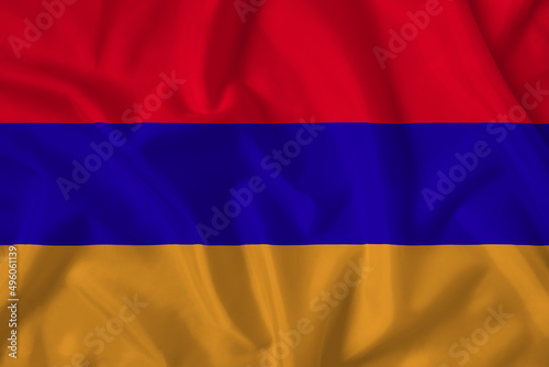Fototapeta premium Armenia flag with fabric texture. Close up shot, background