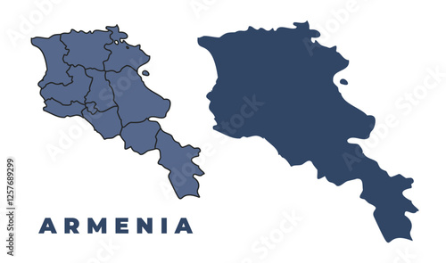 © Abdul, Obraz premium Armenia flat and outline vector map set