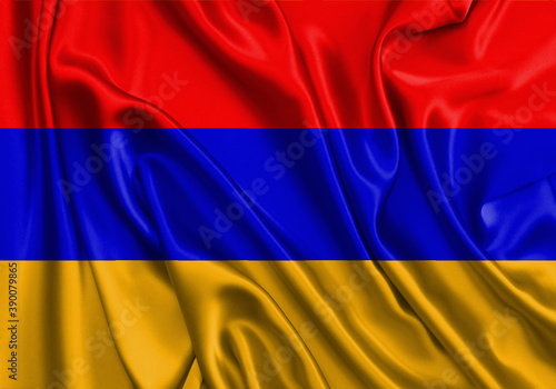 © sezerozger, Naklejka premium Armenia , national flag on fabric texture. International relationship.