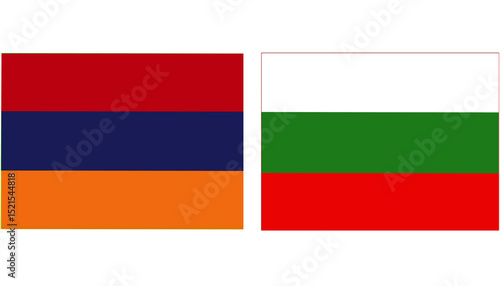 © Usama, Naklejka premium Armenia Official flag with Bulgaria national flag, both countries flags in Horizontal shape and isolated on white background Rectangular colorful design Flag with together.