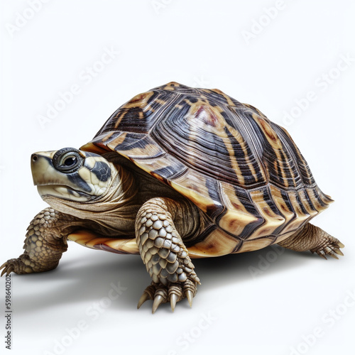 Fototapeta premium Armored and Unique: A Stunning Portrait of a Turtle on White Background