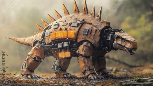 © pedot, Obraz premium Armored dinosaur robot in a forest