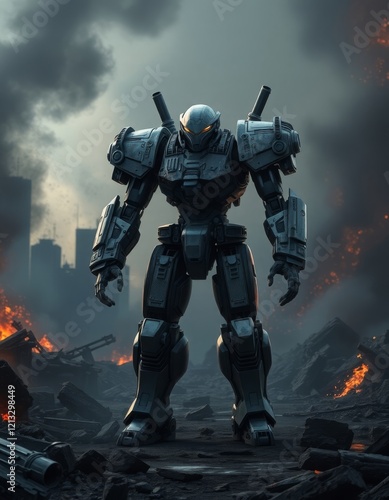 Fototapeta premium Armored Fighter in a War Zone