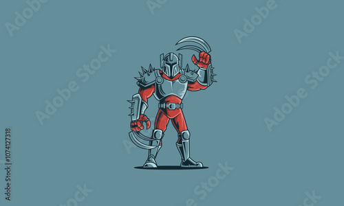 Fototapeta premium Armored warrior with spiked suit and claw weapon, battle-ready.