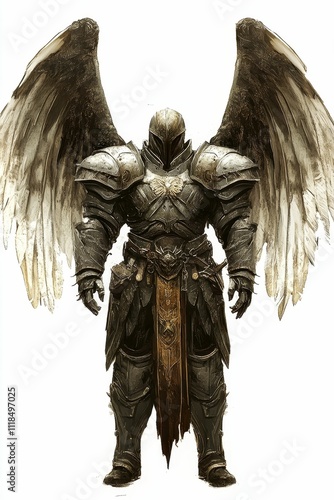 Fototapeta premium Armored winged figure; dark, imposing, powerful.