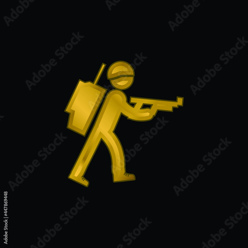 Fototapeta premium Army Soldier Walking gold plated metalic icon or logo vector