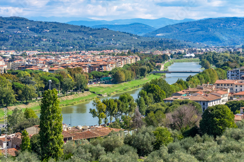 Fototapeta premium Arno River Bridges Countryside Florence Tuscany Italy