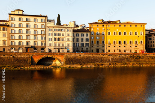 Naklejka premium Arno River Embankment after Sunrise in Florence, Tuscany, Italy