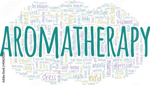 © Colored Lights, Obraz premium Aromatherapy vector illustration word cloud isolated on a white background.