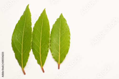 © Johannes Menge, Obraz premium Aromatic bay leaves isolated on white background