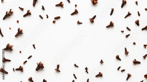 © AlfaSmart, Fototapeta premium Aromatic Cloves on White Background - Perfect Culinary Composition