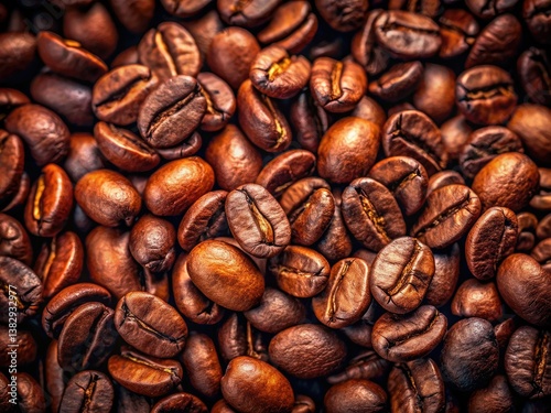© Autun, Naklejka premium Aromatic coffee beans: a panoramic view showcasing the roasted texture, a coffee lover's dream.