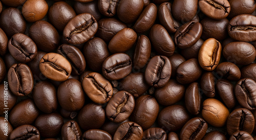 Fototapeta premium Aromatic coffee beans background showcasing rich brown colors and intricate...